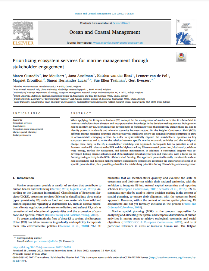 - D3.2: Methodologies for quantifying ecosystem services supply: A case-study for a multi-use platform (mussel aquaculture and offshore wind energy) in the Belgian Continental Shelf